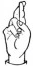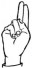 На ћирилици написано СИМОНА ПУХАЛО састоји се из 12 слова [?]. Исписано ћириличном једноручном азбуком за глувонеме: